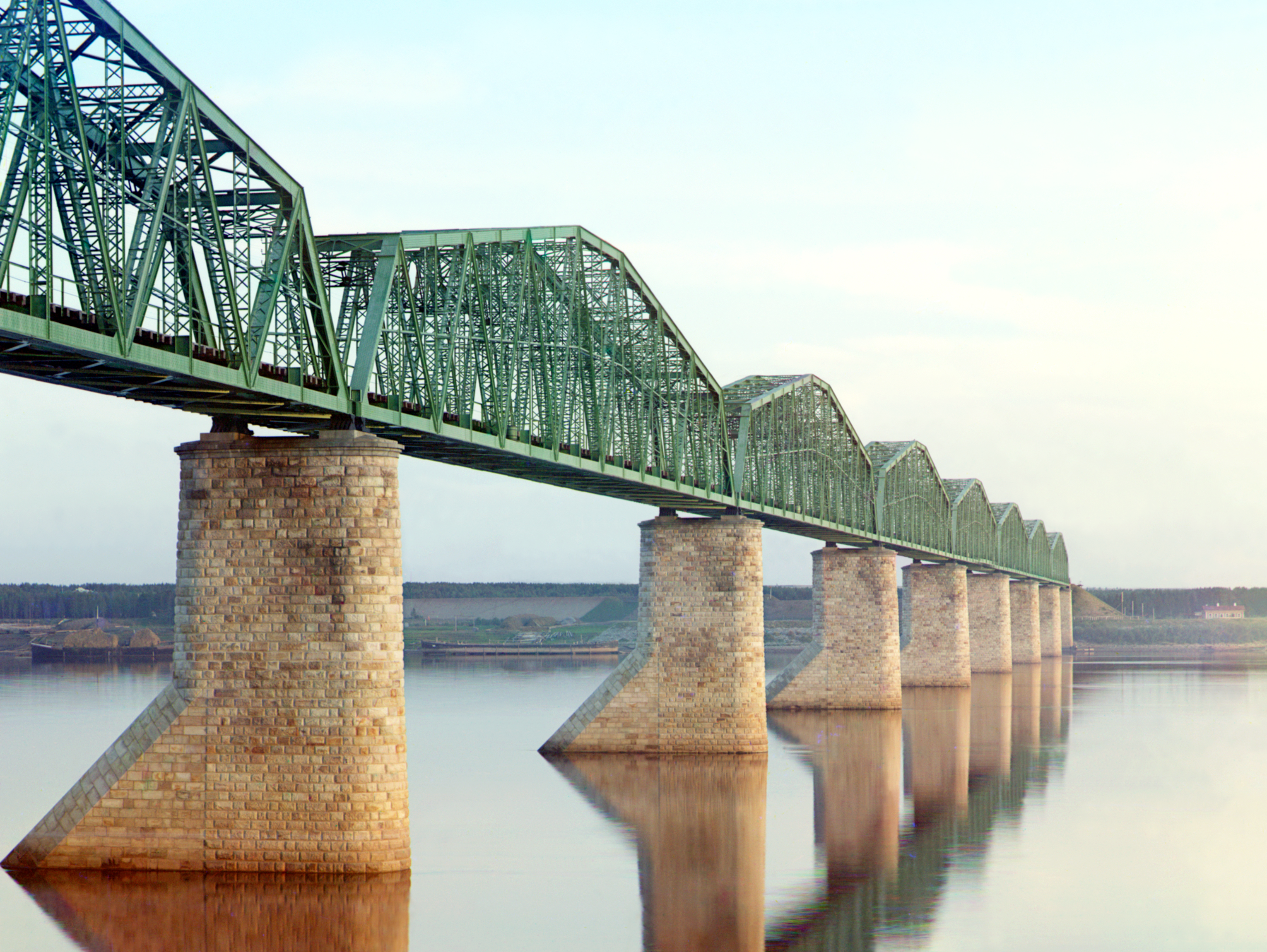 Город Пермь. Железнодорожный мост через Каму. Фотография С. М. Прокудина-Горского.
