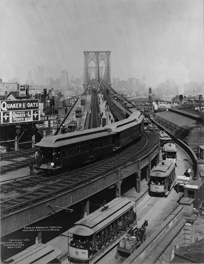 For me it's one of the greatest photos of the past time. It shows you so much. There are old trains, streetcars, horses on the streets of NYC and of course the Brooklyn Bridge, which is always great to look at.