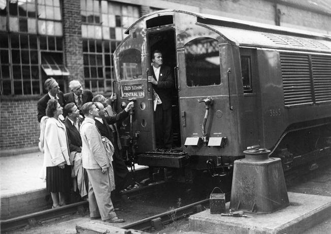 Old pic of a train at the White City depot in London during the meeting with staff from Stockholm Transport.