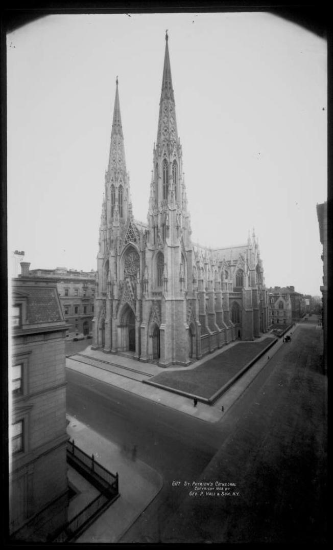 Old photograph of St. Patrick's Cathedral before it was surrounded by skyscrapers, New York City.