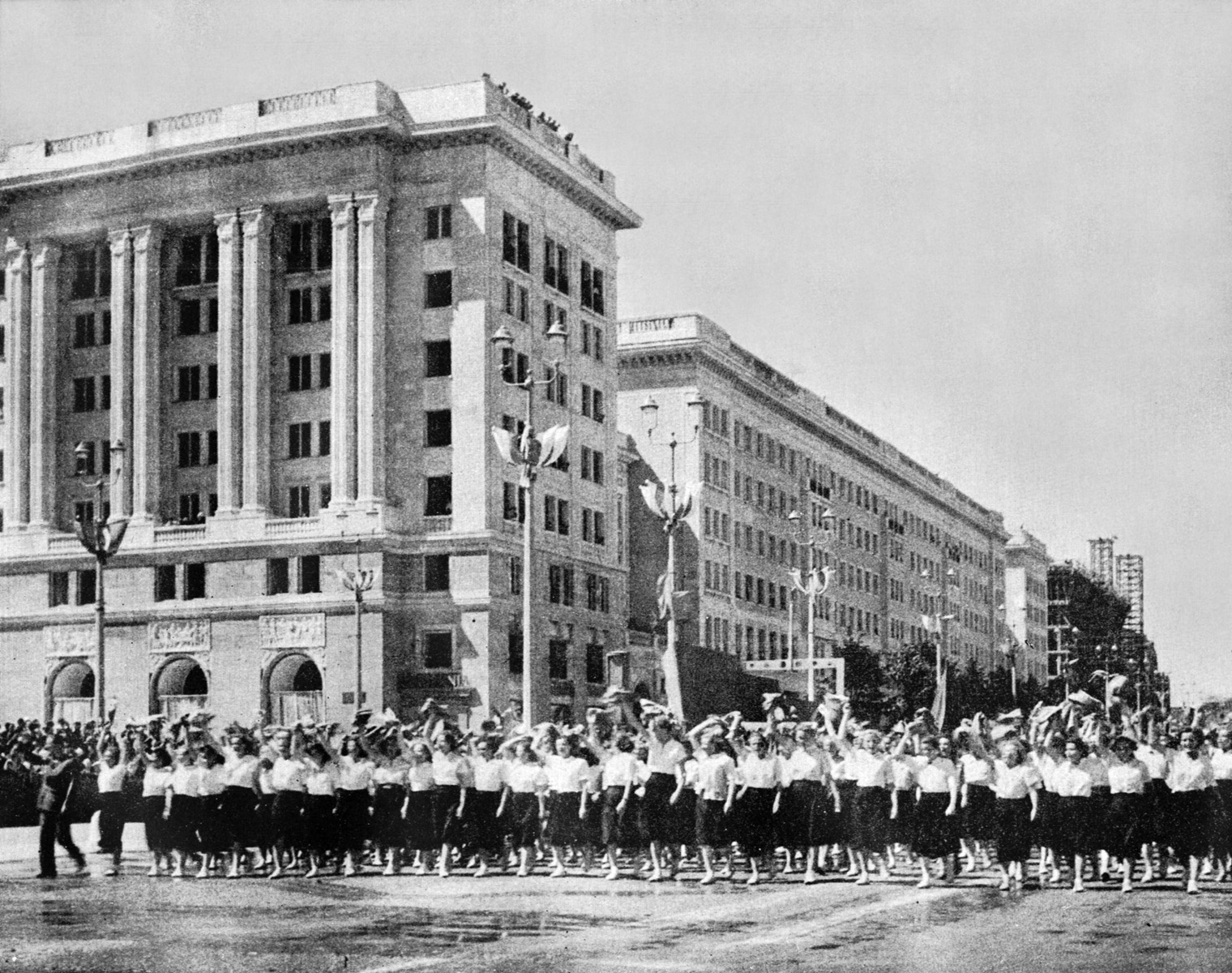 Zdjęcie zrobione podczas pochodu młodzieży 22 lipca 1952.
